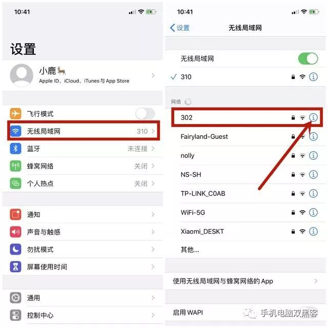1、首先我们打开苹果手机设置,打开无线局域网,找到自己连接的WiFi,点击后面的感叹号。