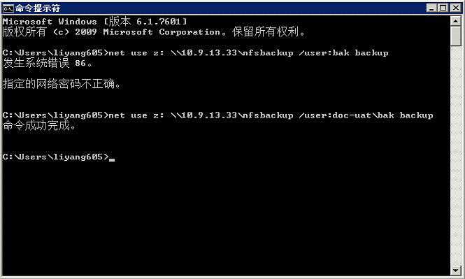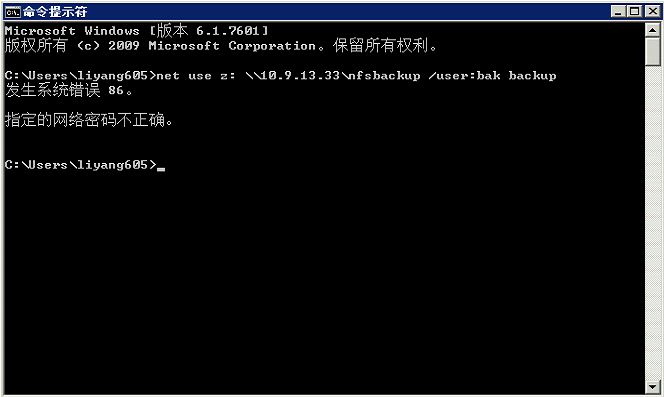 net use z: \10.9.13.33nfsbackup /user:bak backup
