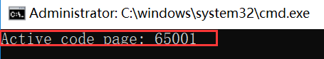 - cmd后看到Active code page:65001,经测试生效,如果不想显示该信息,数值数据改为chcp 65001>nul