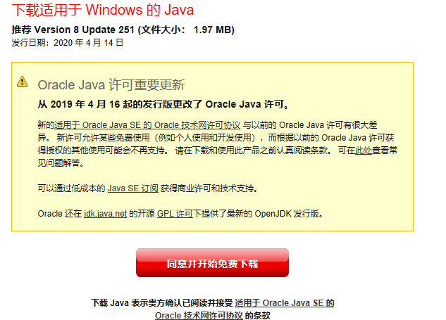 下载 Java 表示贵方确认已阅读并接受适用于 Oracle Java SE 的 Oracle 技术网许可协议的条款