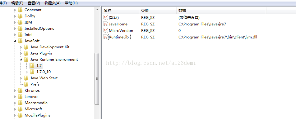 如不存在../jre/bin/java.dll(当运行的是winnt/system32/java.exe),则注册表将在此时发挥作 用,HKEY_LOCAL_MACHINE/SOFTWARE/JavaSoft/JavaRuntime Environment/ CurrentVersion键值所记录的实际上是winnt/system32/java.exe的版本值,该版本值只保存主、次两个版本号,如 1.6,1.7等。