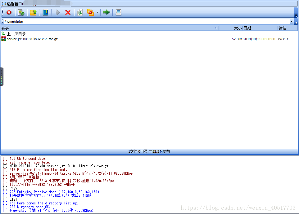 第二步:下载好了用 FTP Rush将其上传到/home/data/下