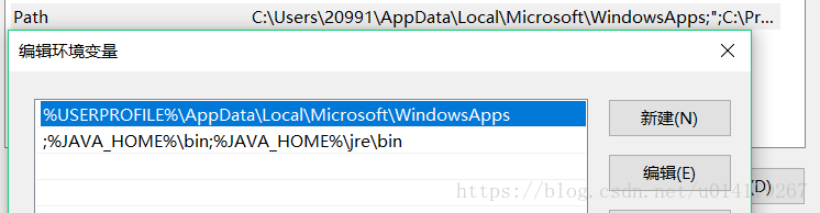 4、弄好以后,再往用户变量里面添加PATH;由于我之前就装过了java7,所以仅仅添加下面一行