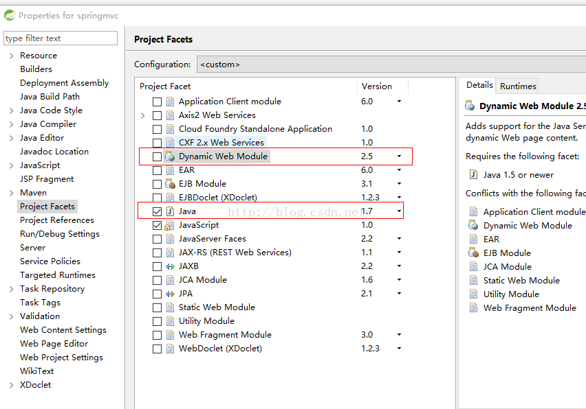 右键项目, properties->Project Facets