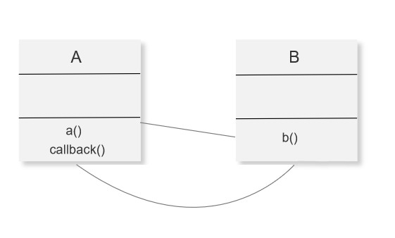 在类A中方法a调用了类B中的b方法,b方法在执行完成之后,会执行类A中的callback()方法,这个callback方法就是回调函数,表明类B的b方法执行完成。