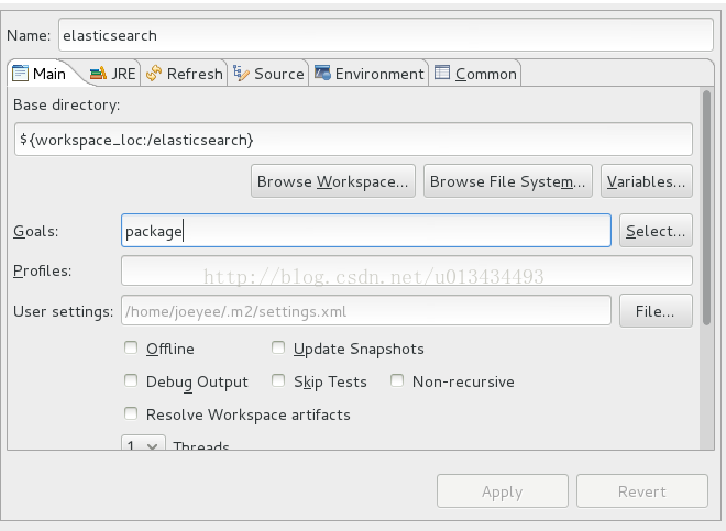 进入Debug Configurations...,在Maven Build新建一个叫elasticsearch的配置。