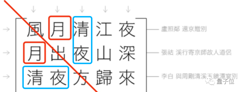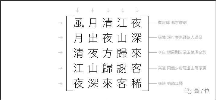 例如,计算机先从 13 万行唐诗中,随机找出诗句 “风月清江夜”: