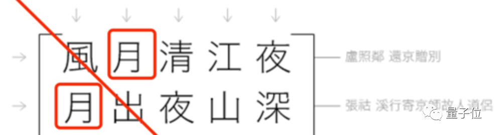 根据对称矩阵的原理,第二句诗的开头,就应该以 “月” 为首: