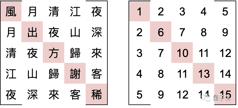 不过,他遍历了全唐诗里所有五言诗共二十八万七千句后,也只能得出两个这样的幻方。