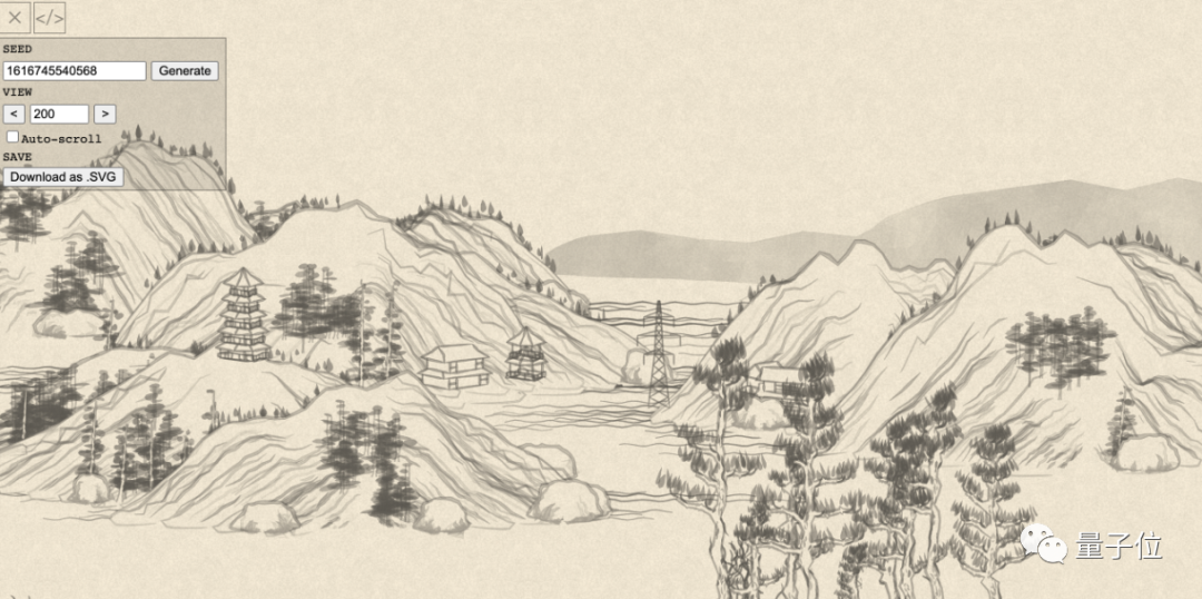 除了诗词古文,他对传统美术也颇有研究,开发过无限生成随机山水画的工具,和多款中文字体。