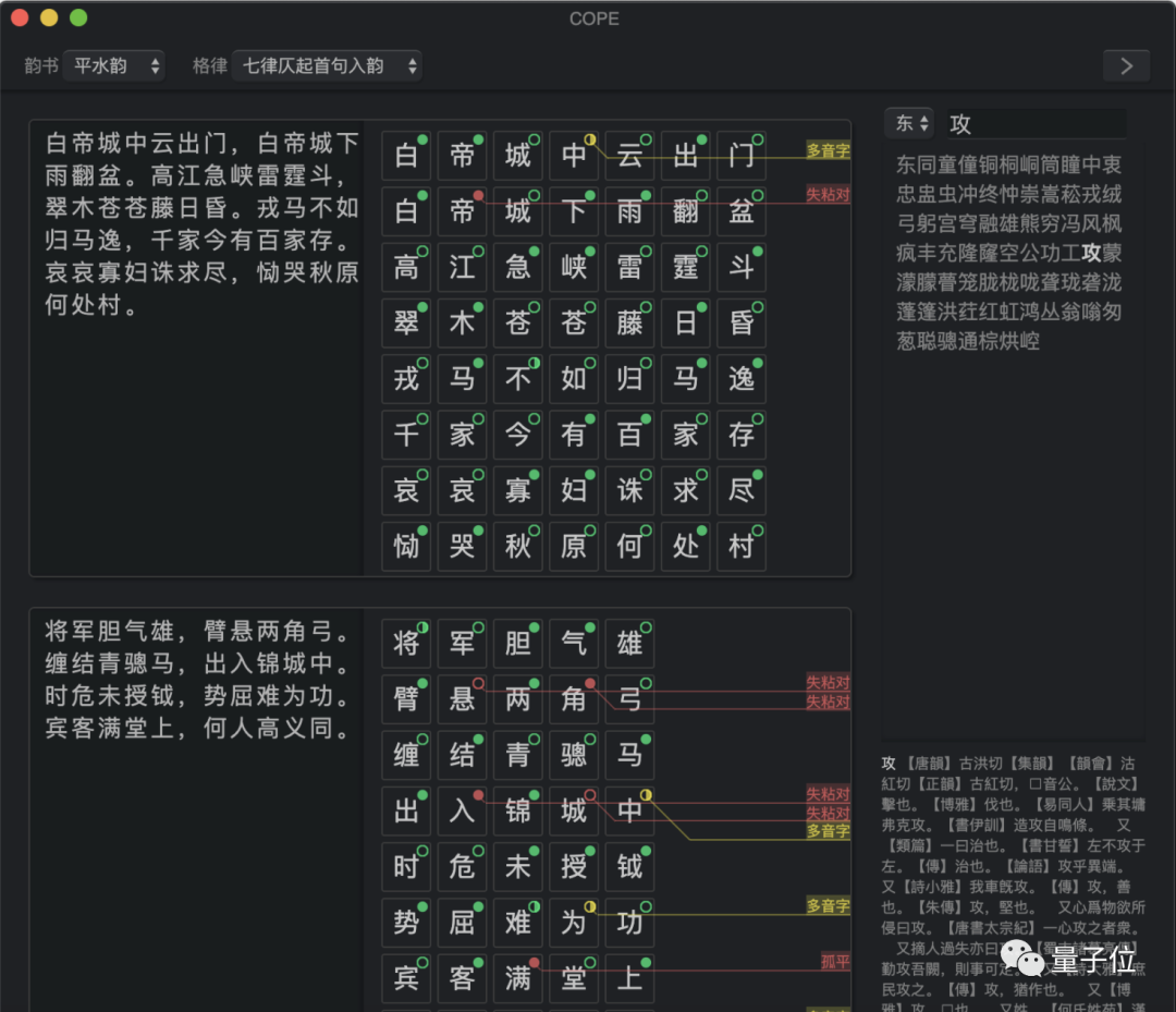 还能通过机器学习分析用户作品,并与《全唐诗》中的诗句做比对,看你写的诗像哪位诗人的风格。