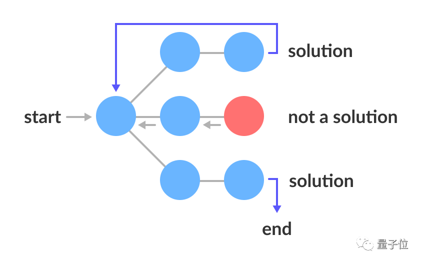 这个问题,可以用到一种名为 “回溯法” 的算法来求解,原理如图: