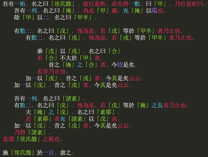 用到一个名为“埃氏筛”的算法,完整文言文如下: