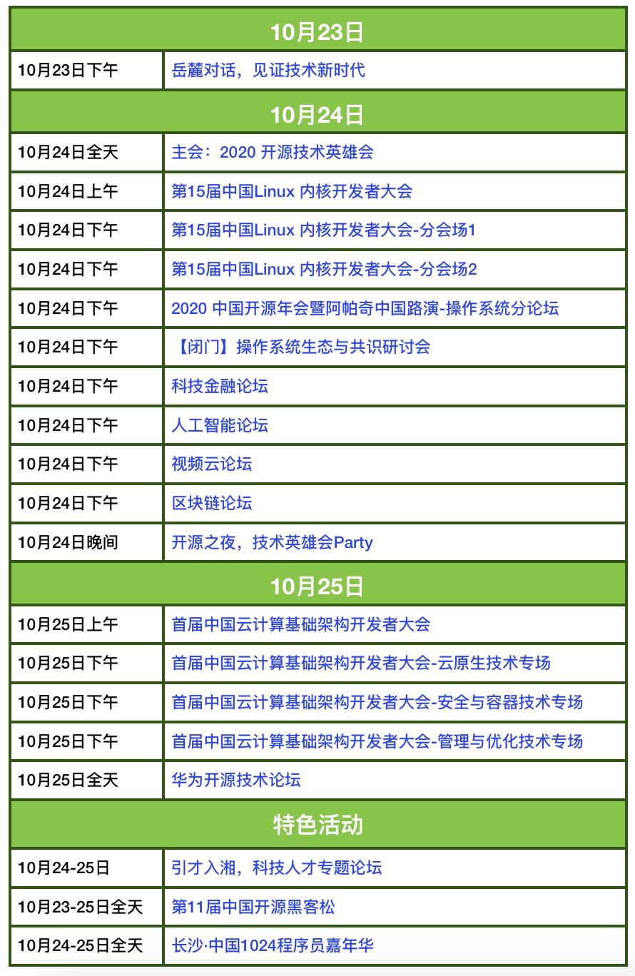10 月 23-25 日,由 CSDN 等多家单位精心筹划的“长沙 · 中国 1024 程序员节”将盛大举行。程序员节活动以开源为主议题,包括:2 场岳麓尖峰对话,2020 开源技术英雄大会,10+ 场热门技术分论坛/峰会,创意集市,体验感超强的科技文化嘉年华,最 HIGH 时刻的开源之夜。内容聚焦开源技术及生态建设、操作系统及硬件创新、开源社区及商业化发展等多个重要话题。