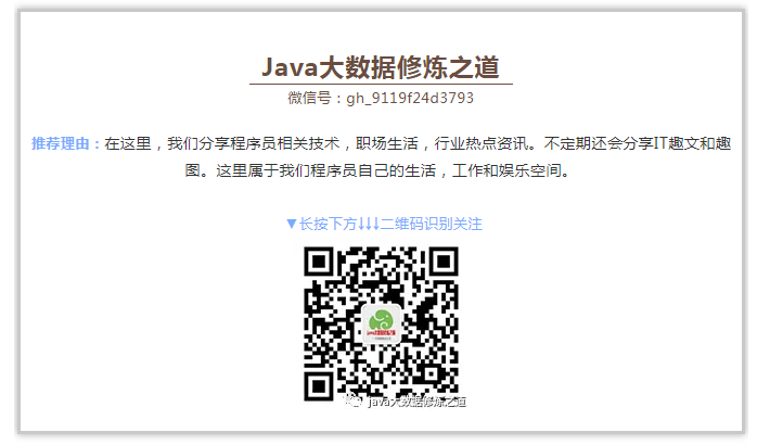 本文转载自微信公众号 『 java大数据修炼之道 』, 更多精彩请识别文末二维码识别关注