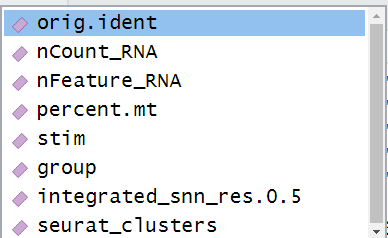 上面我在后面分析用到的是orig.ident和group还有seurat_clusters变量,这里分别存储的是样本名,分组以及cluster信息。