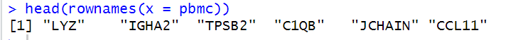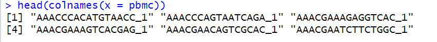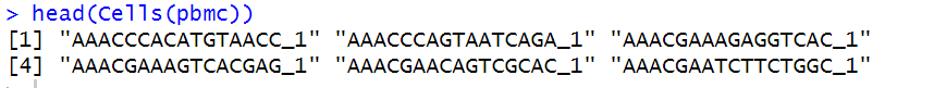 Cells(pbmc) # 和上面的一样,各个细胞的编号