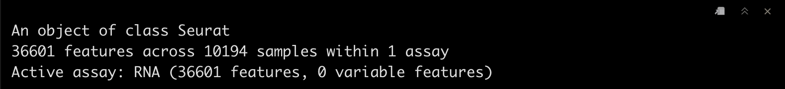 srat <- CreateSeuratObject(adj.matrix,project = "pbmc10k")
