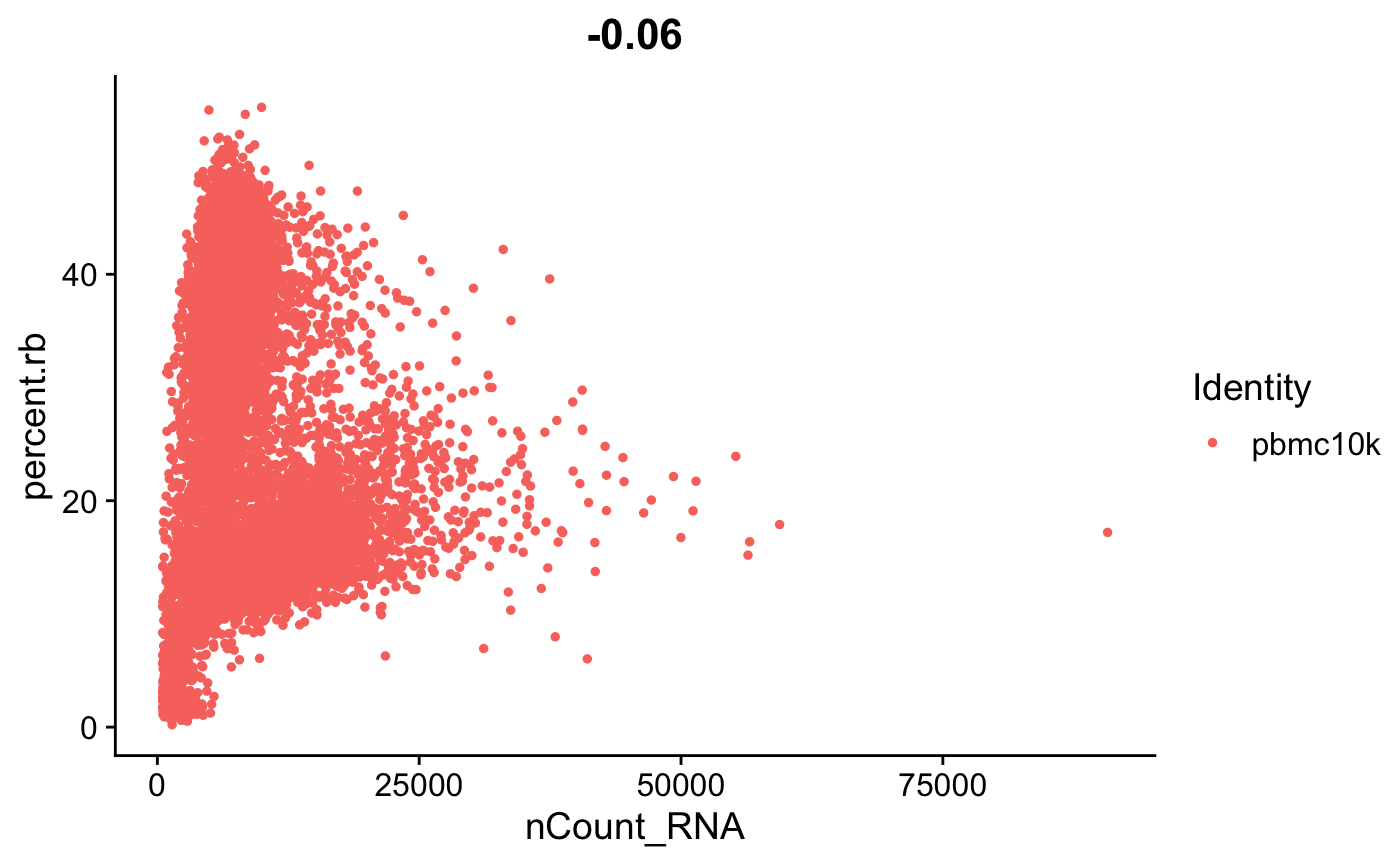 FeatureScatter(srat, feature1 = "nCount_RNA", feature2 = "percent.rb")