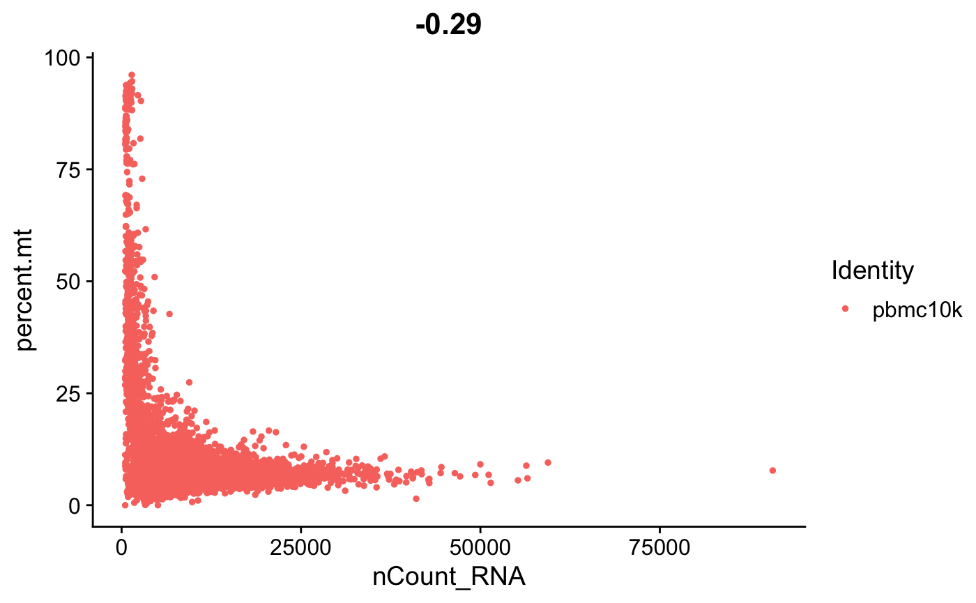 - 这里我们可以看到高线粒体基因与低UMI计数相关,可以理解为死细胞。 ????