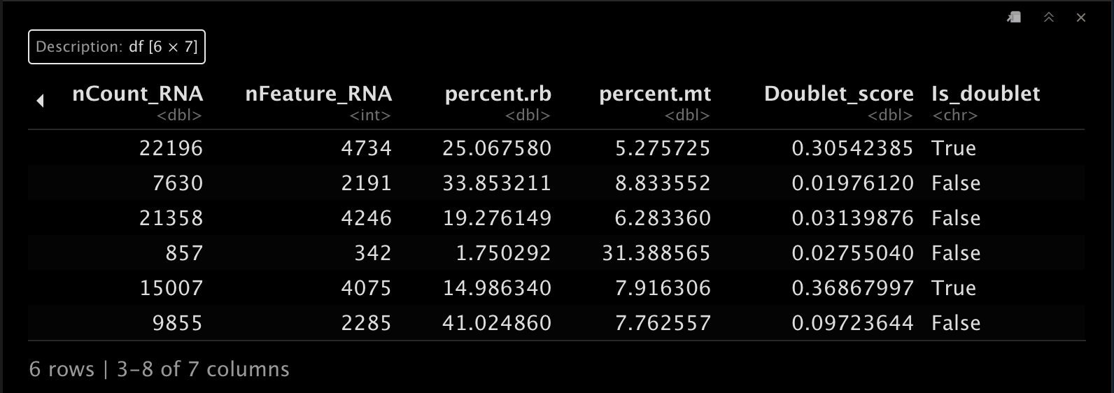 colnames(doublets) <- c("Doublet_score","Is_doublet")