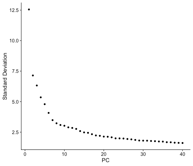 我们用前40个PCs绘制一份elbow plot: