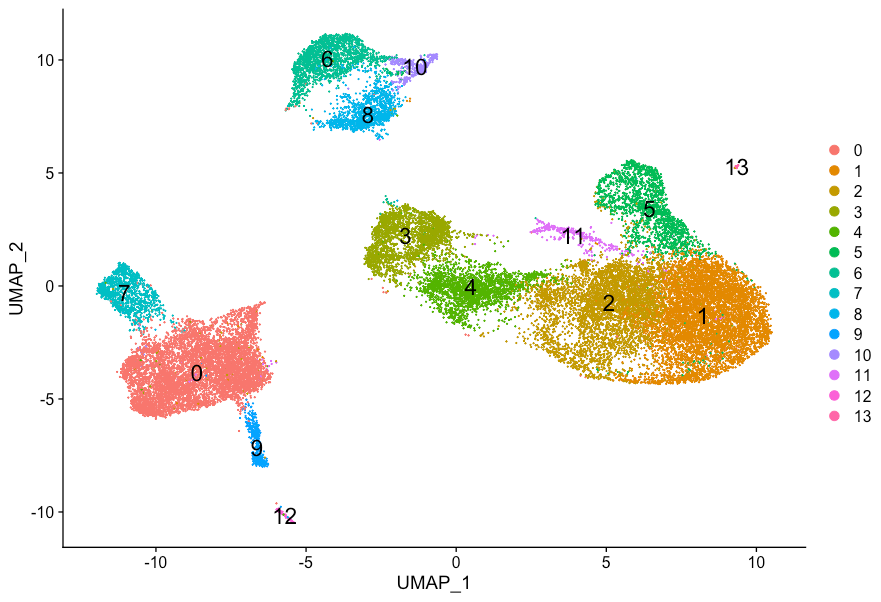 我们将使用FindClusters()函数执行基于图的聚类。分辨率 (resolution)是设置下游聚类的重要参数,需要针对每个单独的实验进行优化。对于3,000-5,000个细胞的数据集,分辨率设置在0.4-1.4之间通常会产生良好的聚类。增加的分辨率值会导致更多的聚类,这对于较大的数据集通常是必需的。
