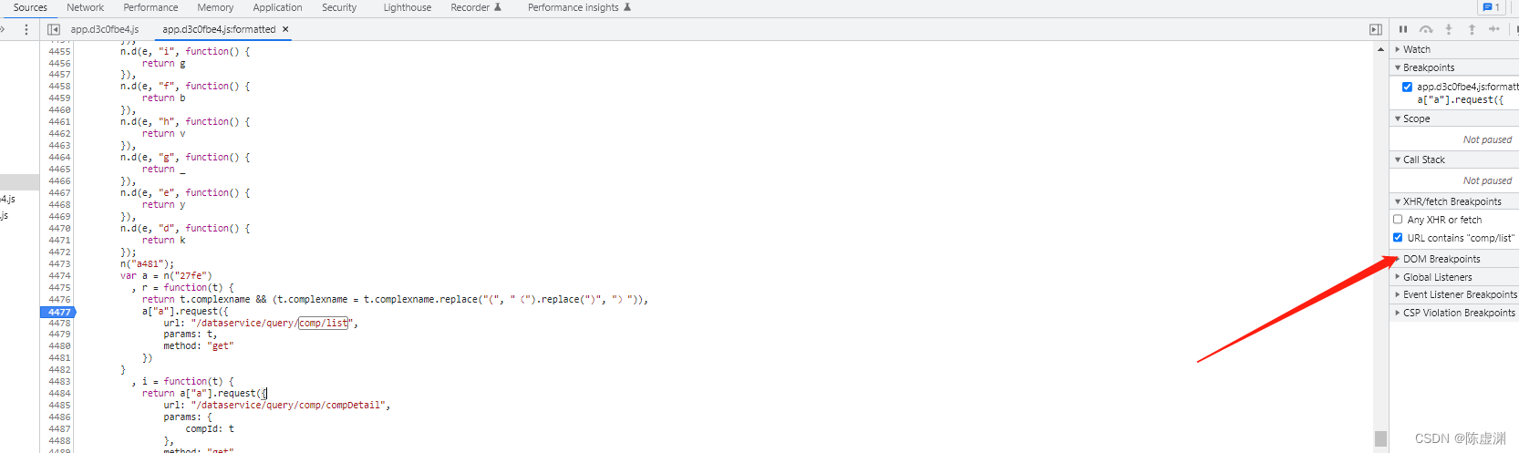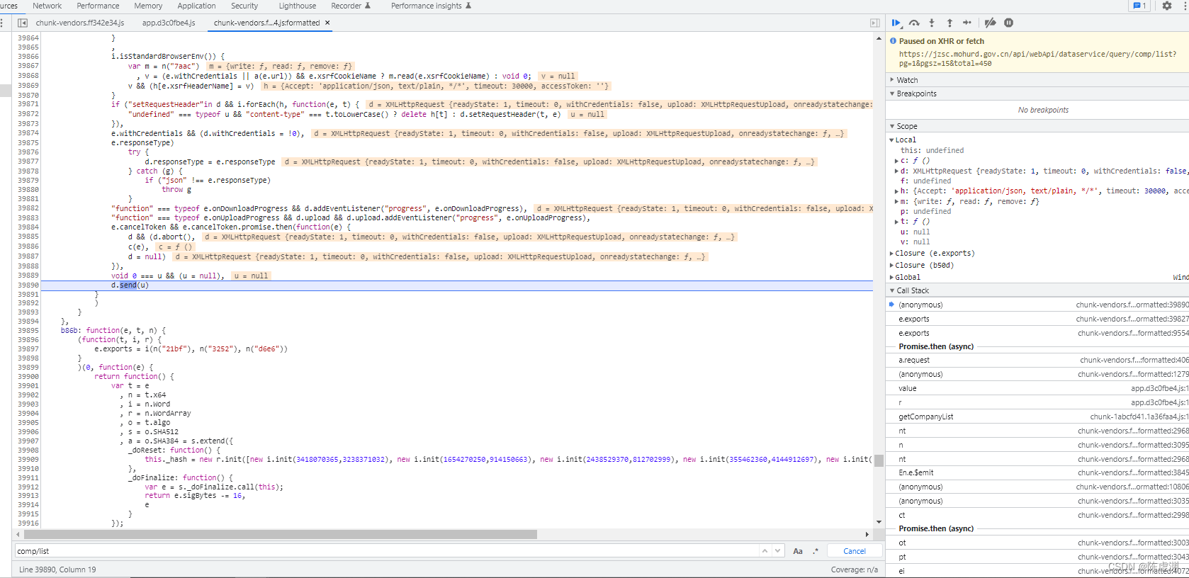 取这个地址的最后两个 comp/list 先全局搜索,在点开搜索,找到对应js,进souce下一下断点看看