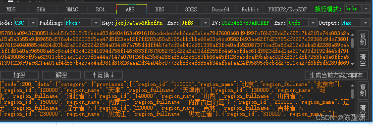 好到了这里我们看到iv是m那么key就是f,复制个未解密的字符串,打开wt-js试一下(注意复制过来是16进制的,不是base64,记得选hex,要注意区分