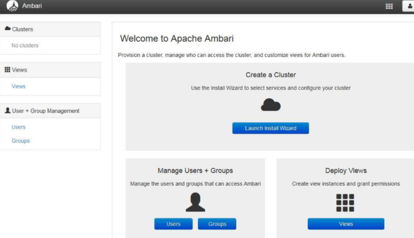 登录 Ambari 之后,点击按钮”Launch Install Wizard”,就可以开始创建属于自己的大数据平台