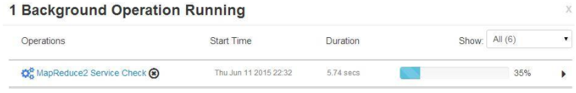 装完 Hadoop 的集群后,并不知道这个集群是不是可用。这时候我们就可以运行一个 “Run Service Check”。点击这个命令后,就会出现下图的进度显示