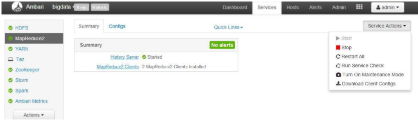 当点击 MapReduce2 后,就会看到该 Service 的相关信息,如下图