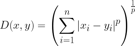 Minkowski距离的公式如下所示: