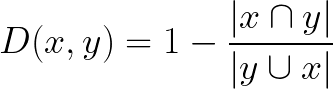 要计算Jaccard距离,我们只需从1中减去Jaccard指数: