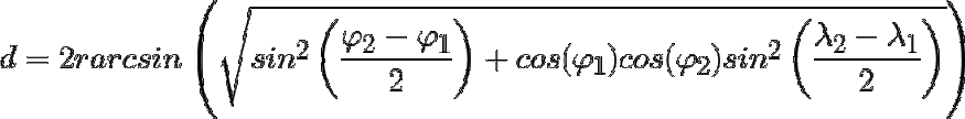 如您所料,Haversine距离通常用于导航。 例如,您可以使用它来计算两个国家之间的飞行距离。 请注意,如果距离本身不那么大,则不太适合。 曲率不会产生太大的影响。