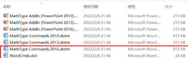 第五步,打开刚才安装的mathtype文件夹,打开office support,根据自己的word选择32或者64的文件夹,复制如下图两个文件 (mathtype commands 2016.dotm和wordcmds.dot),粘贴到上述文件夹里。