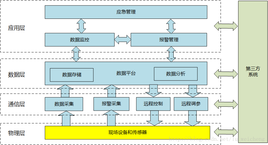 (4)应用层:主要功能包括数据监控、报警管理、应急管理等。