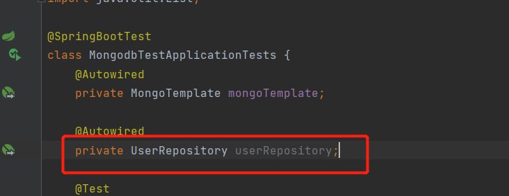 然后将新建的 UserRepository 注入到测试类中