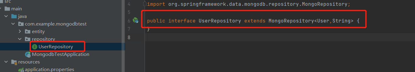 首先创建一个interface实现MongoRepository接口