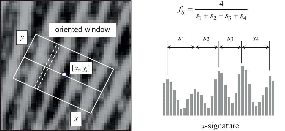 Chikkerur等人(2007)基于短时傅里叶变换(STFT)分析同时估计局部脊线方向和频率。