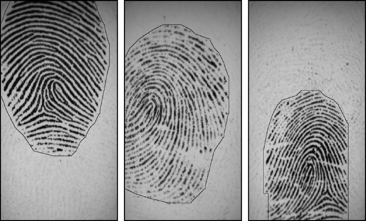 这里分割特指从包含单指的图像中分割出指纹。对于包含多个指纹的图像,例如四连指图像(slap),有专门设计的指纹分割算法分割出各个指纹,并识别每个指纹的具体指位(例如,右手中指)。这里的分割方法均针对接触式指纹图像,而不讨论非接触指纹的分割。对于背景简单的非接触指纹图像(例如使用专用的非接触指纹采集器),这里的分割方法应该可以处理。但是对于复杂的情况(例如在非常复杂的背景下,用手机拍摄的指纹图像),可能需要用到更专门或者更复杂的分割方法(如基于深度学习)。