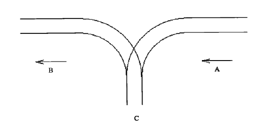 A线出来的火车只能驶入C线,C线驶出的火车只能驶入B线。(即:A -> C -> B)