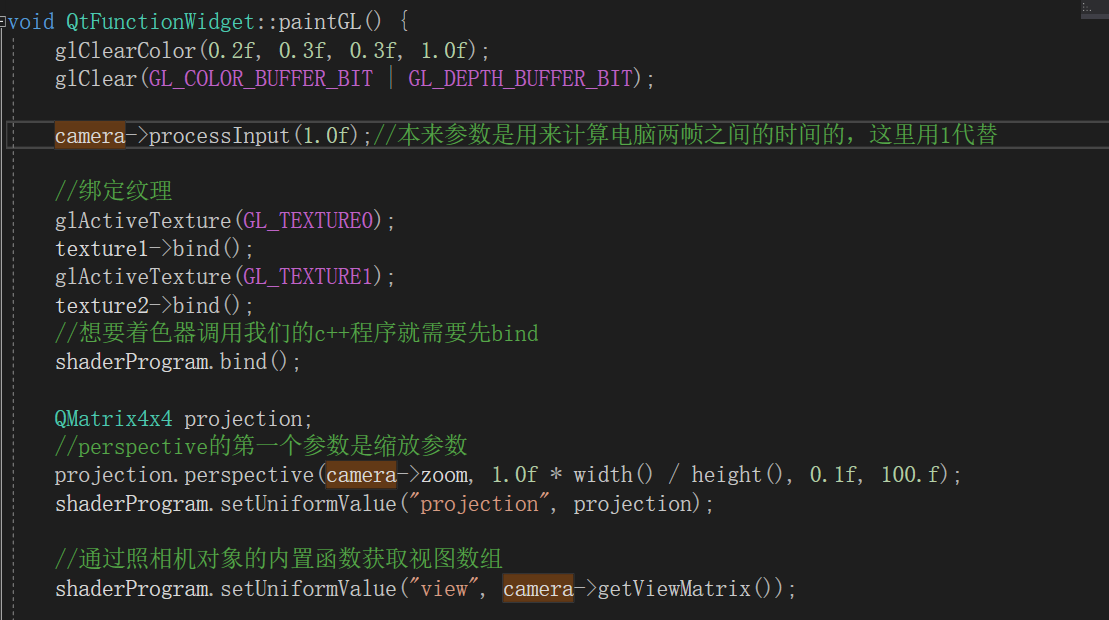 camera->processInput(1.0f);//本来参数是用来计算电脑两帧之间的时间的,这里用1代替