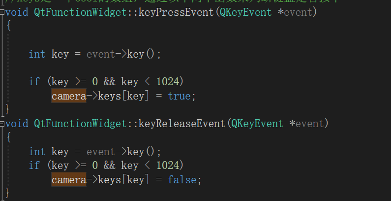 //keys是一个bool的数组,通过以下两个函数来判断键盘是否按下
