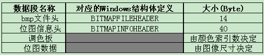 | 位图信息头 | BITMAPINFOHEADER | 40 |