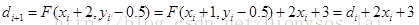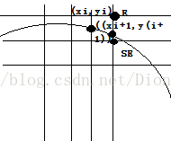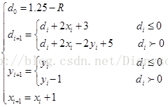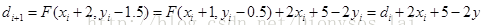 间的线段中点M=(xi+1,yi-0.5),将点M带入F(x,y)方程中,如果F(M)<=0, 说明点M在圆内,则点