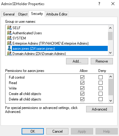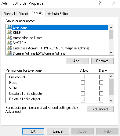 一个这样的模板是 AdminSDHolder 容器。这 容器存在于每个 AD 域中,其访问控制列表 (ACL) 用作模板,将权限复制到所有受保护组。 受保护组包括特权组,例如域管理员、 管理员、企业管理员和架构管理员。如果你正在寻找 有关组的完整列表,您可以在此处找到它们。