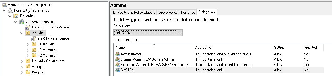 默认情况下,所有管理员都可以编辑 GPO。让我们删除这些权限: