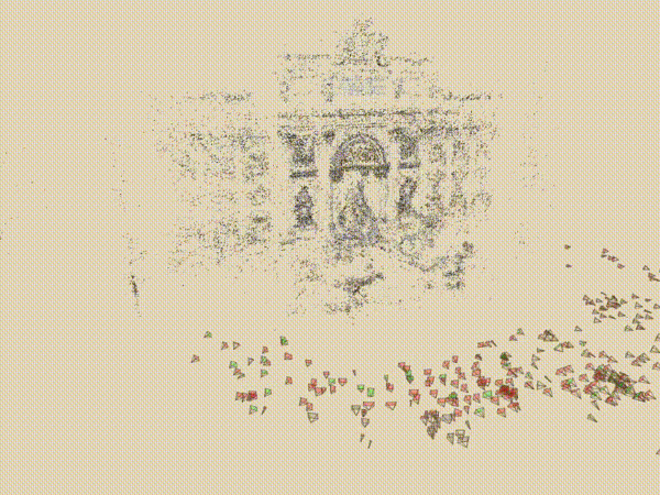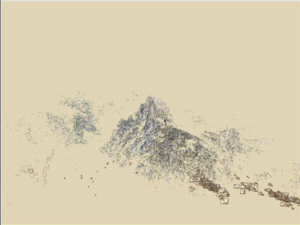 而通过Noah的Photo Toursim系统,会重建出下面的点云数据,这个点云的每一个小区域都对应着原始的一张或多张图像,在当时,通过数百张完全没有事先标定过的无序图像重建三维点云还是一个比较困难的问题,即便是当时最好的软件都还存在错误多、速度慢等问题。作者开发了一个叫做Bundler的软件,通过迭代式优化的方式做到了这一点。