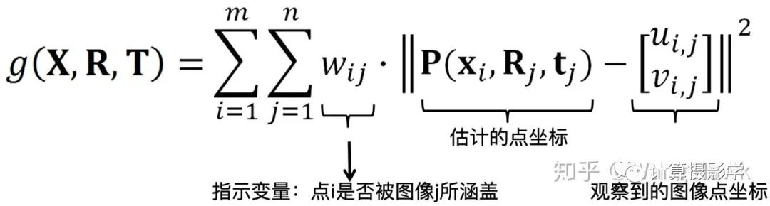 这是一个非线性最小二乘优化问题,最小化这个式子的过程,称为Bundle Adjustment,一般可以用Levenberg-Marquardt一类的方法来求解。